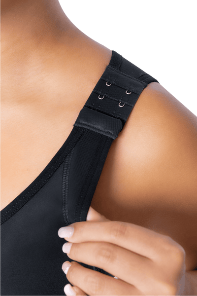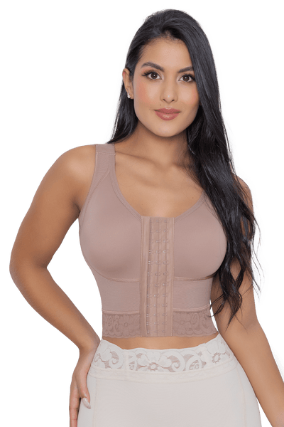 Un brasier de alta cobertura y uso múltiple te brinda el soporte y el moldeado que necesitas en la parte superior y media del torso, mientras ayuda a mejorar tu postura. Confeccionado en tela elástica compresiva, suaviza y realza tu figura de manera natural, ofreciendo cobertura total en la espalda. Los cierres frontales y en los hombros tipo gancho y ojo facilitan su colocación, mientras que el delicado encaje con banda de silicona lo mantiene firmemente en su lugar.